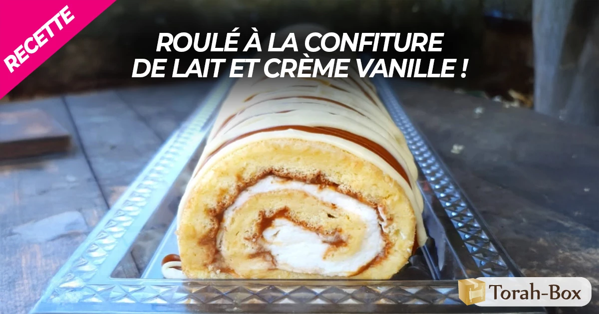 - Déroulez le gâteau, répartissez sur le dessus une couche de confiture de lait puis une couche de crème vanille. Roulez le gâteau.