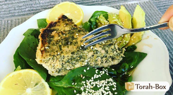 Trempez 3 Matsot dans le bol avec le lait d’amandes pendant 30 secondes. Sortez les Matsot du bol et tapissez le fond d’un moule à quiche avec, en remontant sur les bords. Une fois la croûte de la quiche mise en place, versez la préparation saumon-épinards dedans et enfournez à 180°C pour 15mn. Vous pouvez servir ce plat chaud accompagné d’une salade verte.