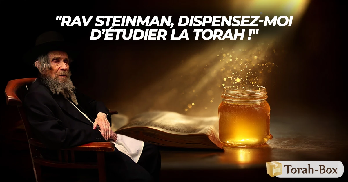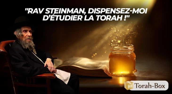 Cette question le dérangeait et le perturbait incessamment. Dépité, il décida de consulter le Rav Steinman pour essayer d’obtenir auprès de lui une « dispense » d’étude de la Torah. « Ainsi, je pourrai poursuivre les activités que j’aime sans remords », se dit-il.