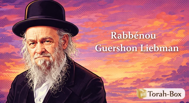 A l'occasion de la Hiloula (jour anniversaire de décès) de notre maître Rabbi Guershon Liebman, l'équipe Torah-Box est heureuse de vous faire découvrir très brièvement son parcours de vie. Celui qui parle du Tsadik de jour de sa Hiloula, celui-ci priera pour lui ! Allumez une bougie et dites "Likhvod Rabbénou, zékhouto taguèn 'alénou" puis priez. Que son mérite protège tout le Klal Israel, Amen !