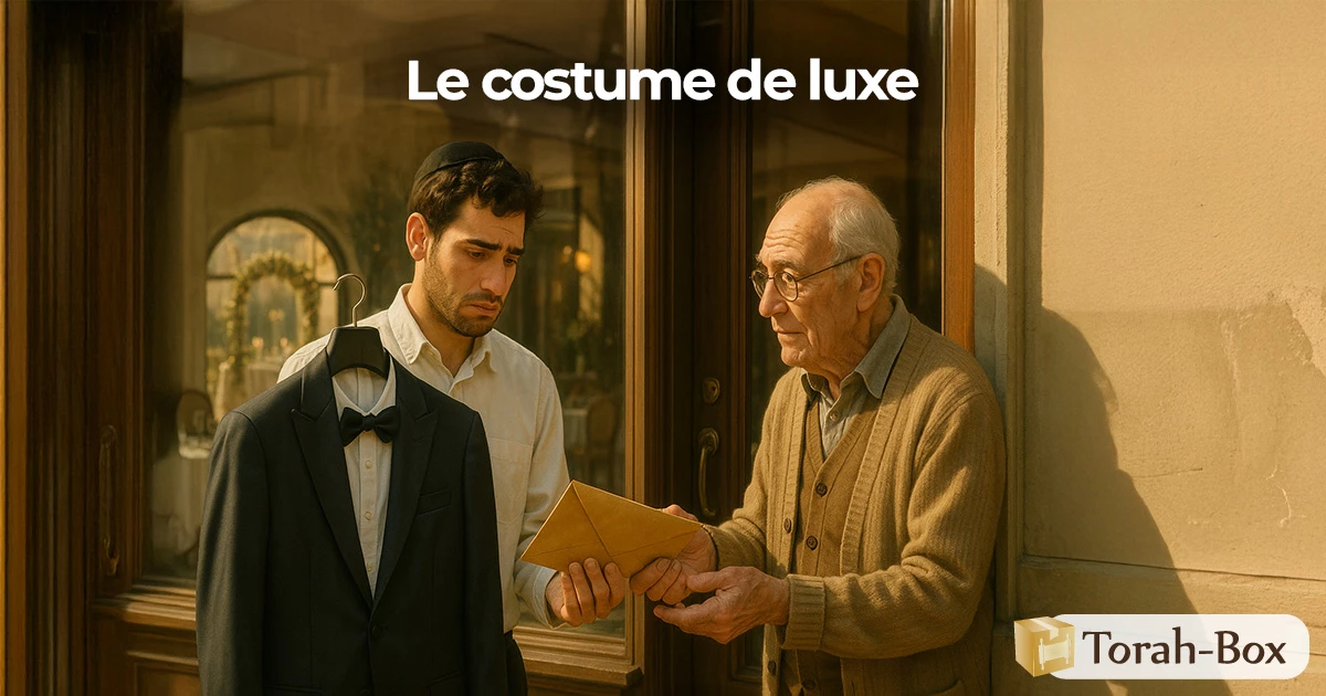Je suis entré sous la ‘Houppa avec le luxueux costume, je me suis senti comme un roi… Tous mes amis m’ont complimenté et m’ont dit : « Chim'on, tu joins le geste à la parole, bravo », heureusement qu’ils n’ont pas continué la phrase en disant : « que toutes ses paroles sont vraies et droites », car ce costume était le produit du mensonge, du vol, et d’un acte malhonnête.