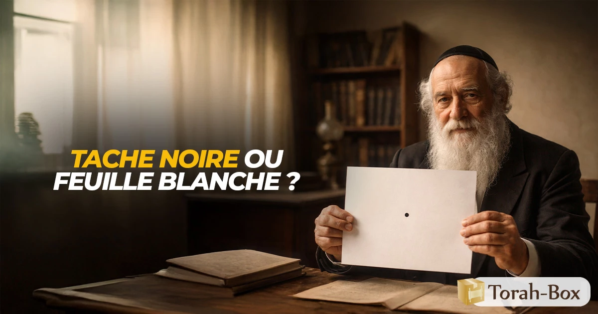 « Ce n’est pas juste », répondit ce Rabbi, « tu vois à présent une feuille blanche sur laquelle il y a une tache noire. »
