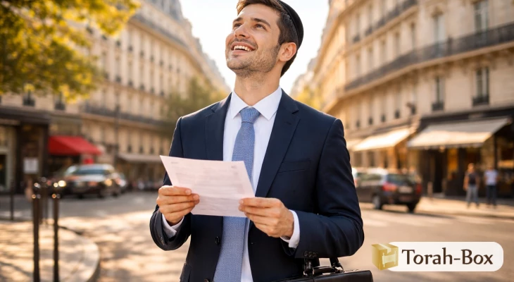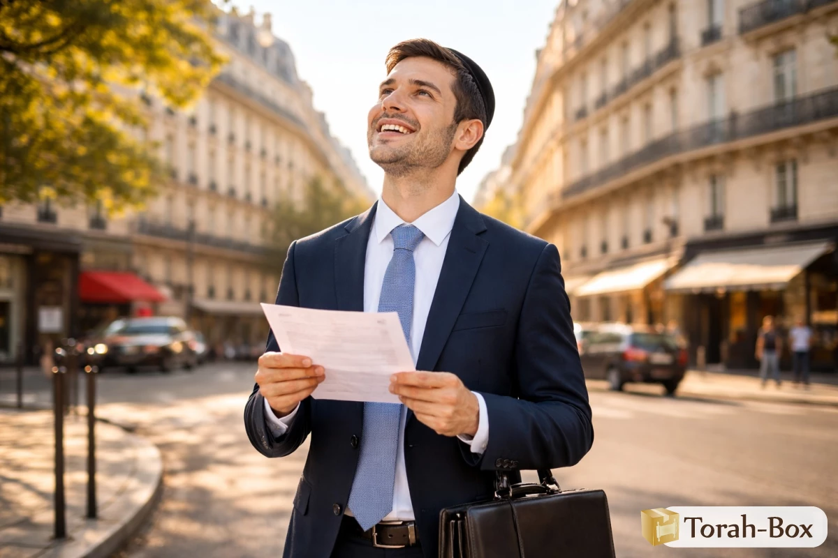Il trouve un poste dans un cabinet comptable à Sèvres, dans les Hauts-de-Seine. Rapidement, il se rend compte que son nouveau poste lui pose certaines difficultés. Il est dans l’année de décès de son père et il tient absolument à réciter le Kaddich tous les jours. Or, on lui confie un déplacement professionnel de trois jours dans une petite ville de Bourgogne, dépourvue de communauté juive à proximité, ce qui le contraindrait à prier seul pendant cette période sans pouvoir réciter le Kaddich pour l’élévation de l’âme de son père. Mais, surtout, la mission commence un mercredi, et se termine vendredi à 16h, ce qui le ferait rentrer à Paris en plein Chabbath.