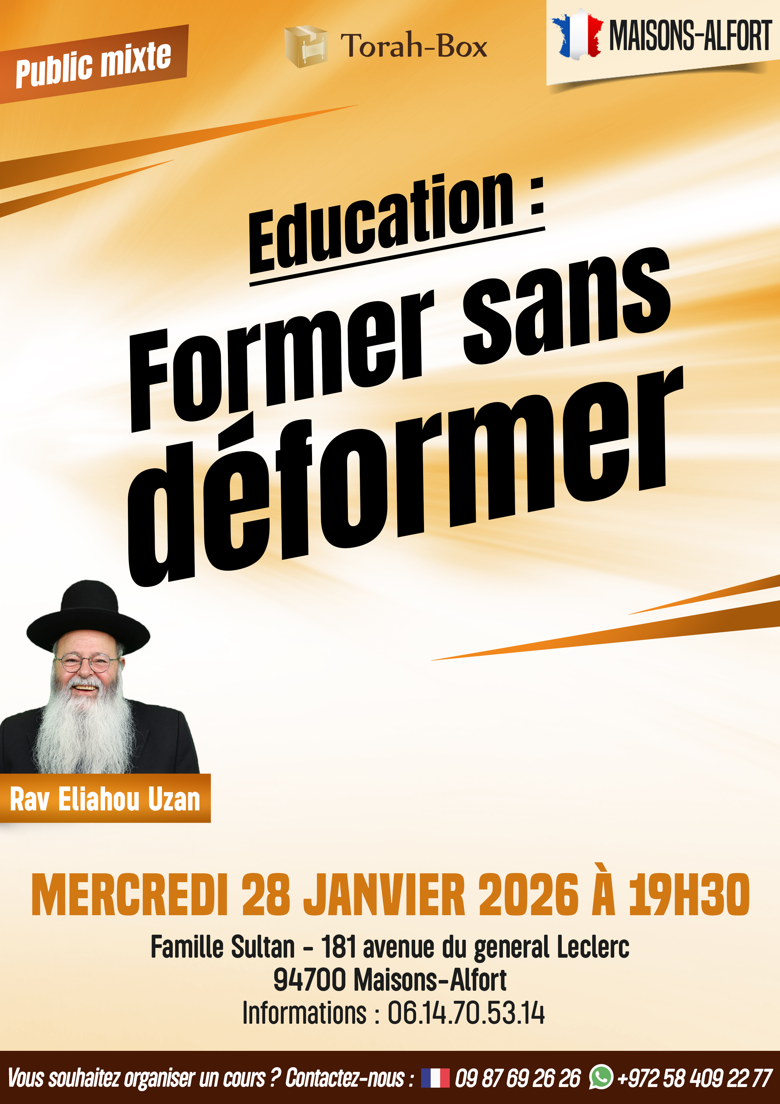 À l’occasion de sa venue exceptionnelle en France, le Rav Éliahou Uzan animera une série de conférences, cours et rencontres spirituelles dans plusieurs communautés de la région parisienne. Un programme riche, varié et accessible à tous, pour se renforcer, réfléchir et partager des moments de Torah authentiques.