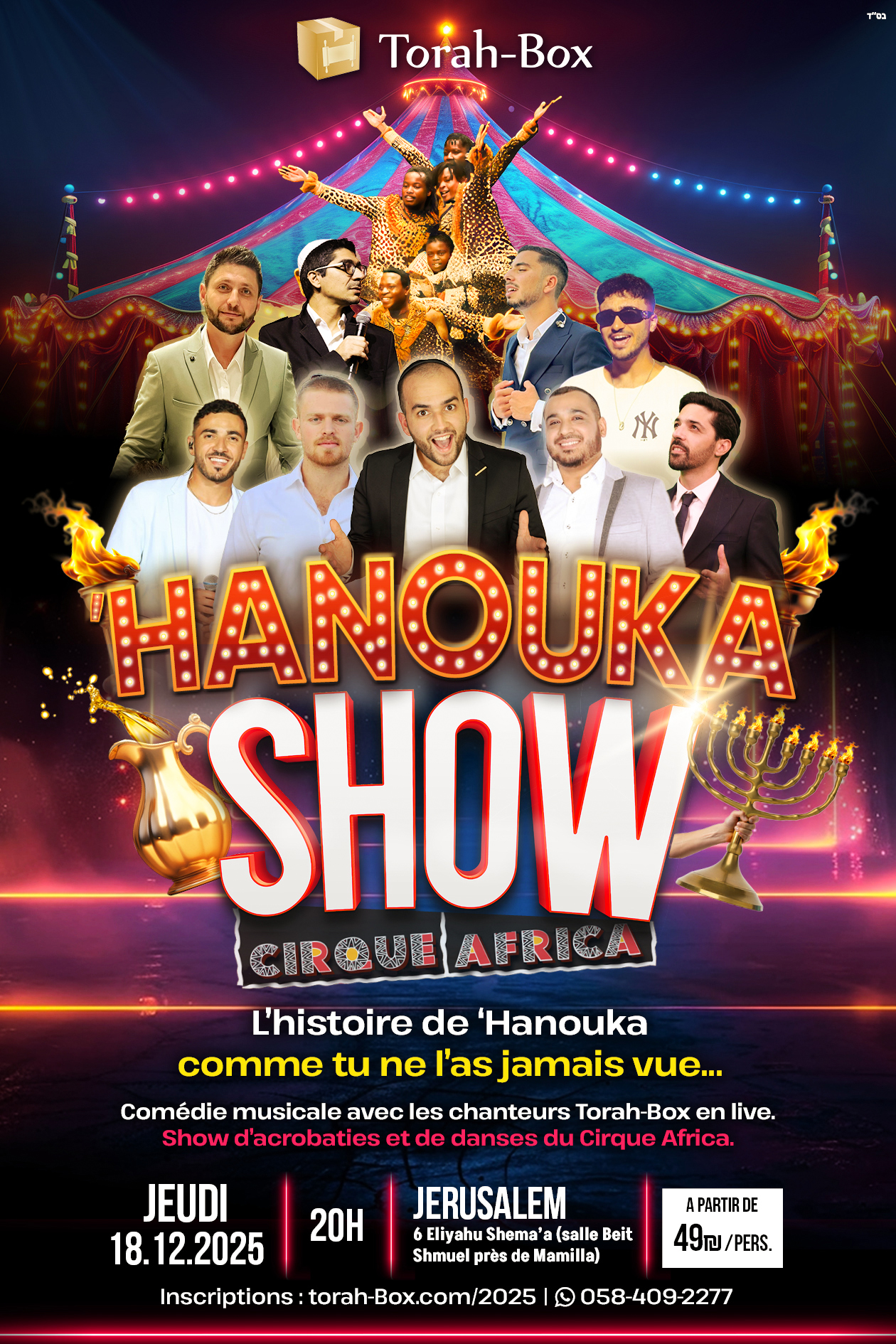 Cette année, Torah-Box transforme la scène de Jérusalem en une expérience totale, où les héros de Hanouka prennent vie à travers un spectacle entre film animé, concert live et acrobaties spectaculaires.