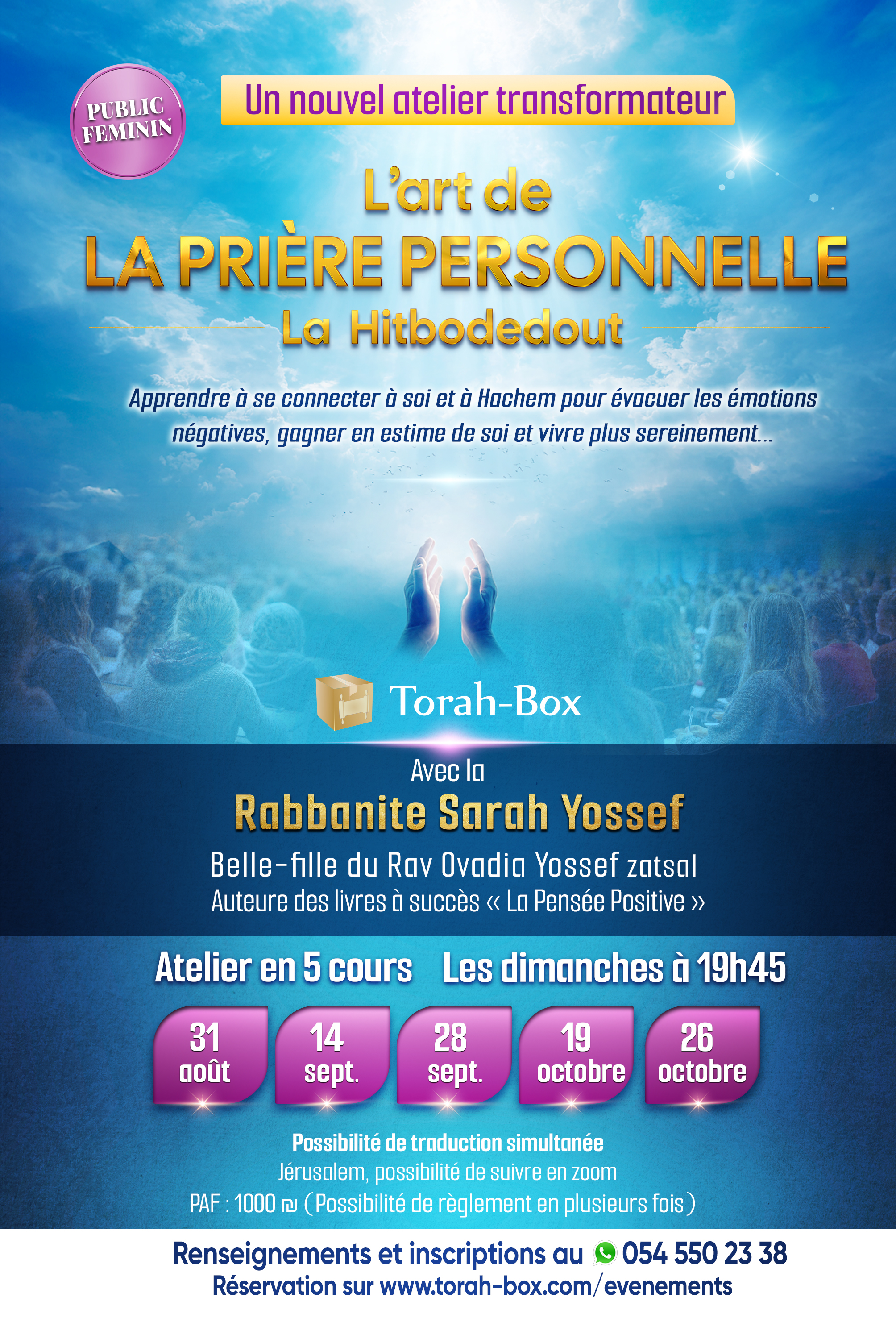 Une série de 5 rencontres puissantes, pour apprendre l’art de la Hitbodedout, cette prière personnelle profonde et libératrice, fondée sur des sources de Torah authentiques et accessibles.