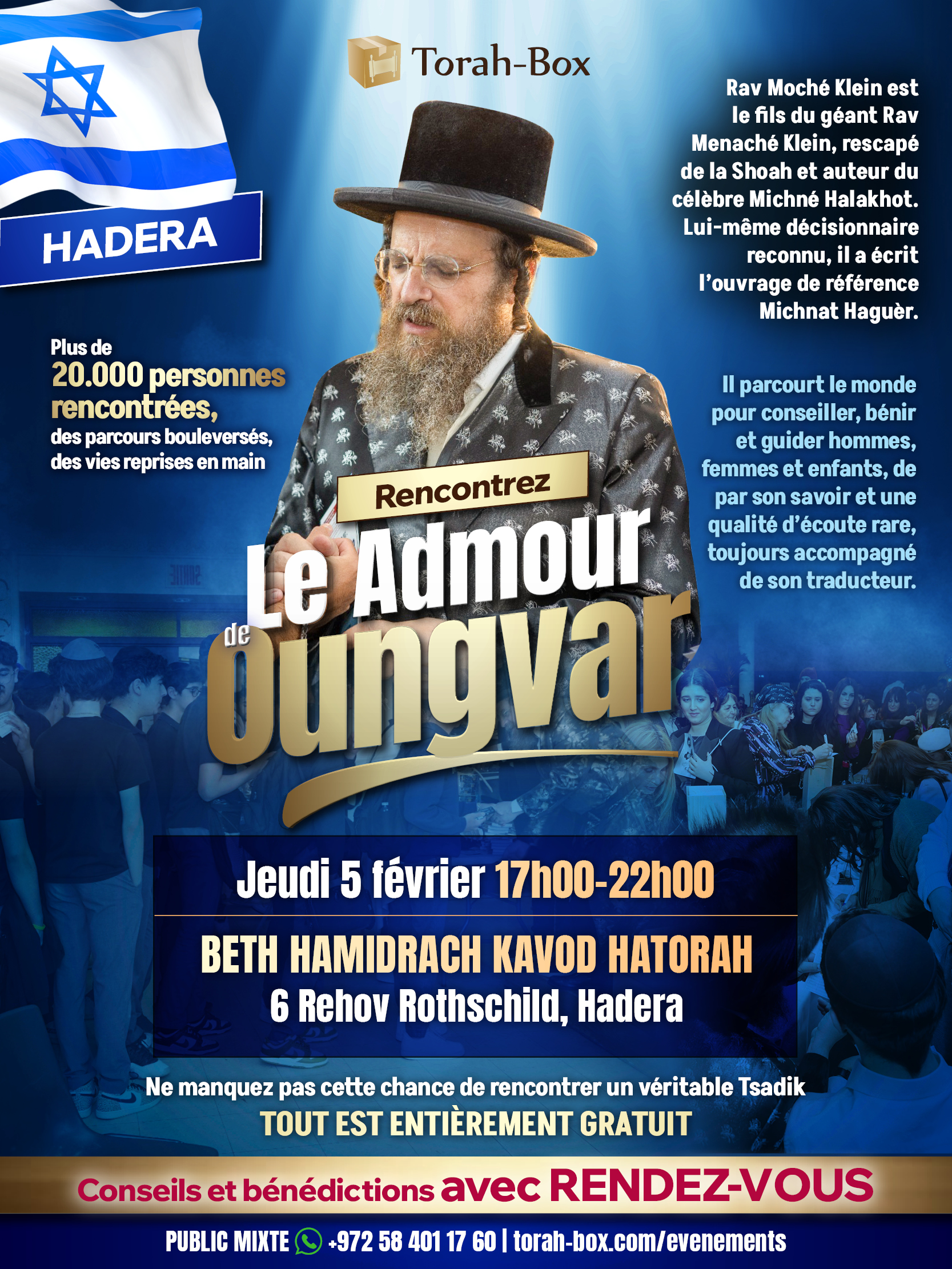 Le Admour de Ungvar n’est pas quelqu’un qui impressionne par de grands discours, mais par sa capacité à comprendre les personnes telles qu’elles sont, avec leurs questions, leurs doutes, leurs difficultés du quotidien. Son approche est directe, humaine, et profondément ancrée dans la réalité de chacun.