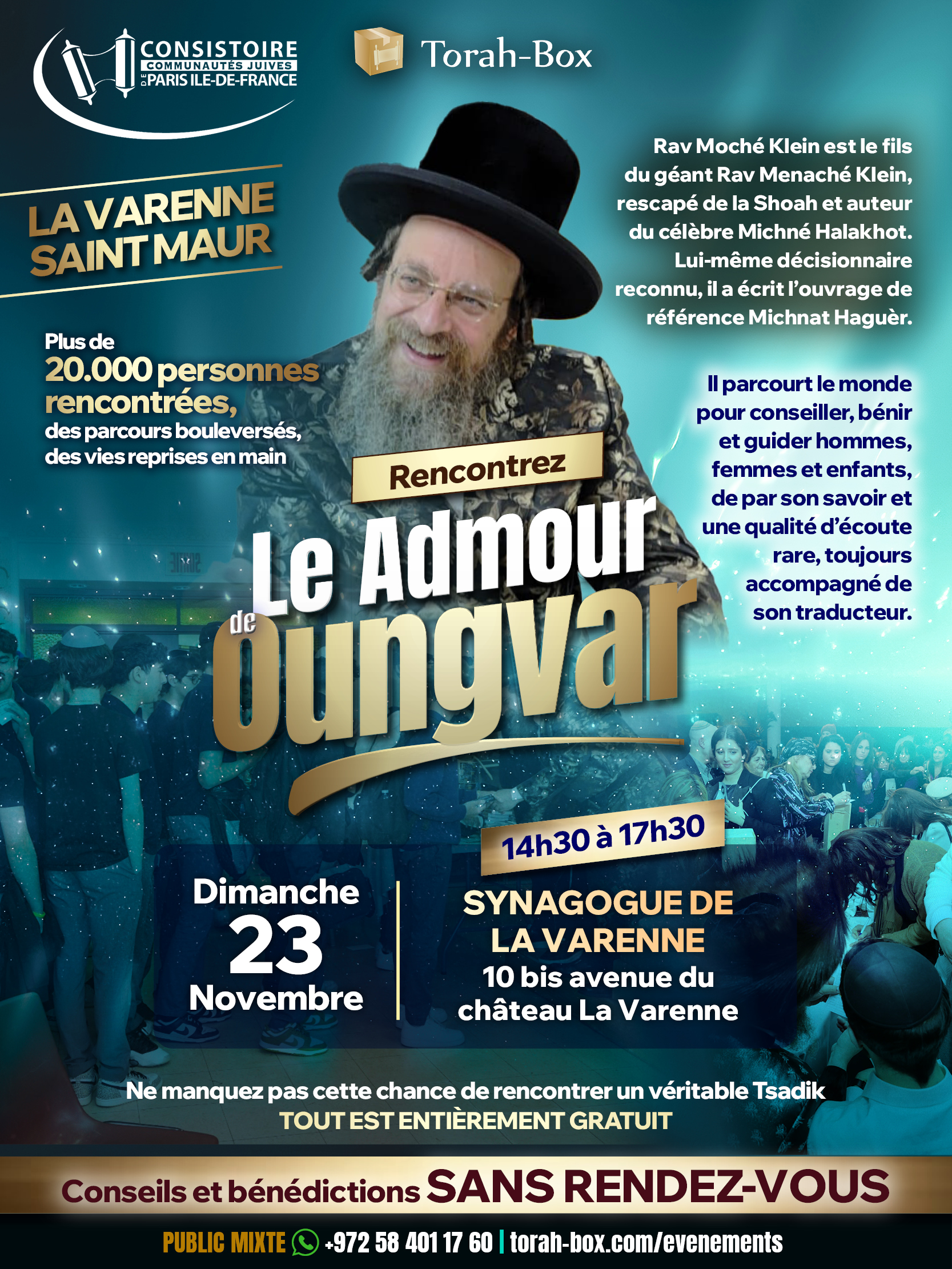 C’est un immense mérite pour la communauté de Massy d’accueillir le Admour de Oungvar, un Tsadik reconnu dans le monde entier pour sa sagesse, sa bienveillance et sa capacité à transformer des vies.