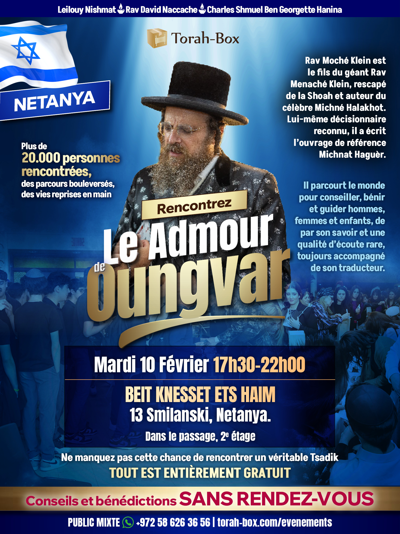 Pour vous inscrire à Le Admour de Oungvar à Netanya, veuillez remplir le formulaire ci-dessous.