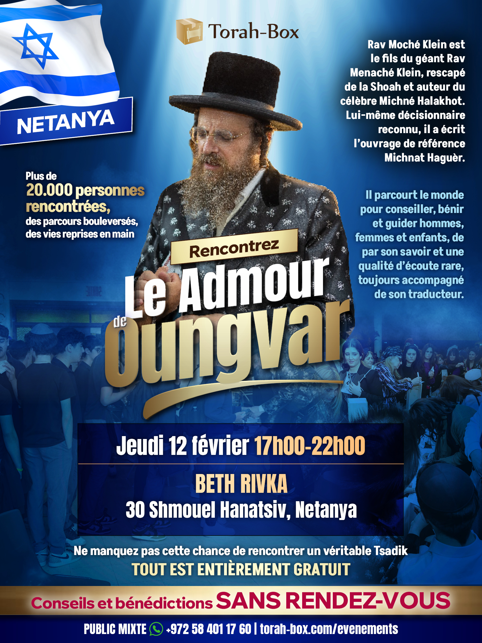 Le Admour de Ungvar n’est pas quelqu’un qui impressionne par de grands discours, mais par sa capacité à comprendre les personnes telles qu’elles sont, avec leurs questions, leurs doutes, leurs difficultés du quotidien. Son approche est directe, humaine, et profondément ancrée dans la réalité de chacun.