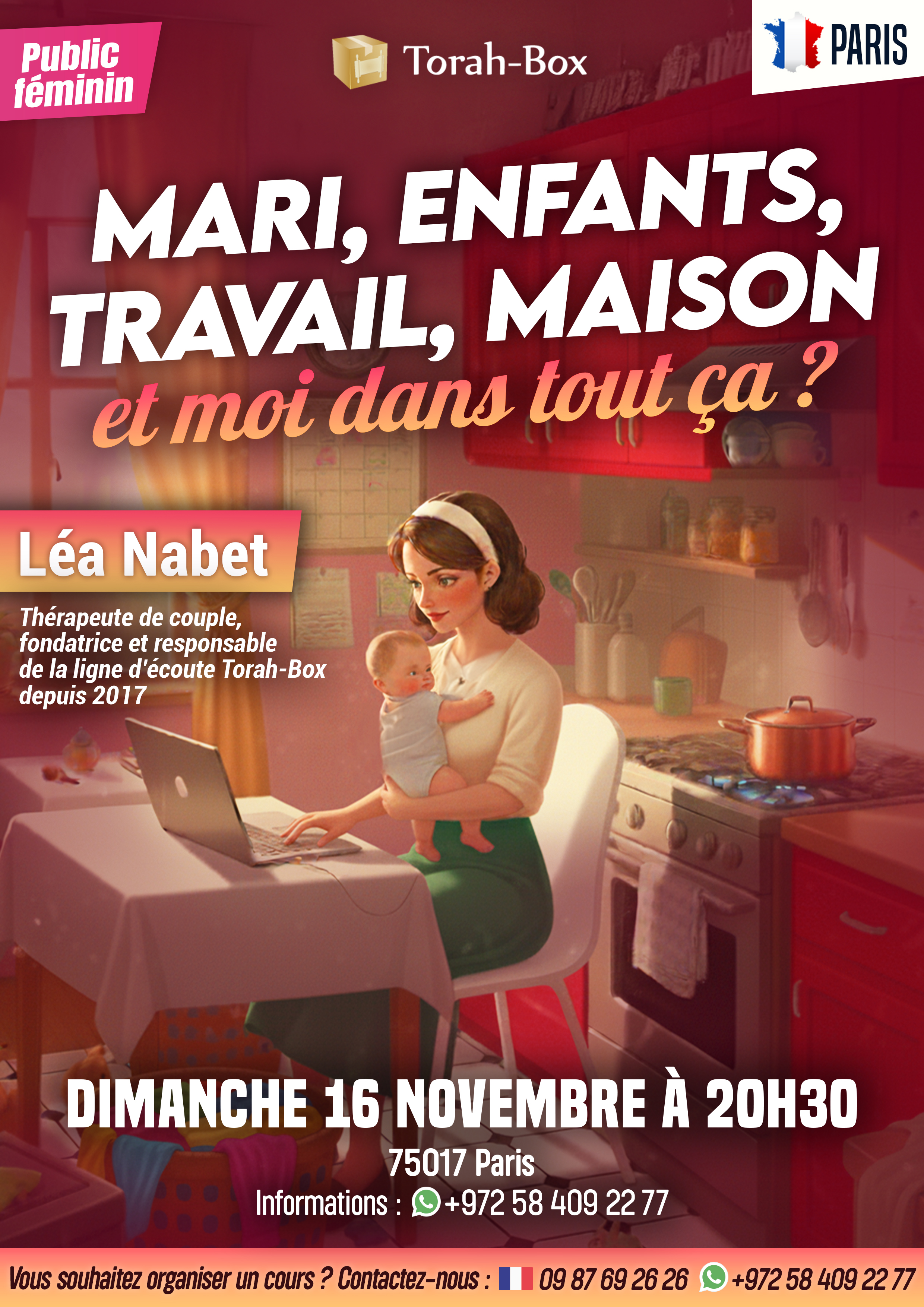 Ces soirées, destinées au public féminin, sont organisées par Torah-Box et auront lieu dans plusieurs quartiers d’Île-de-France :