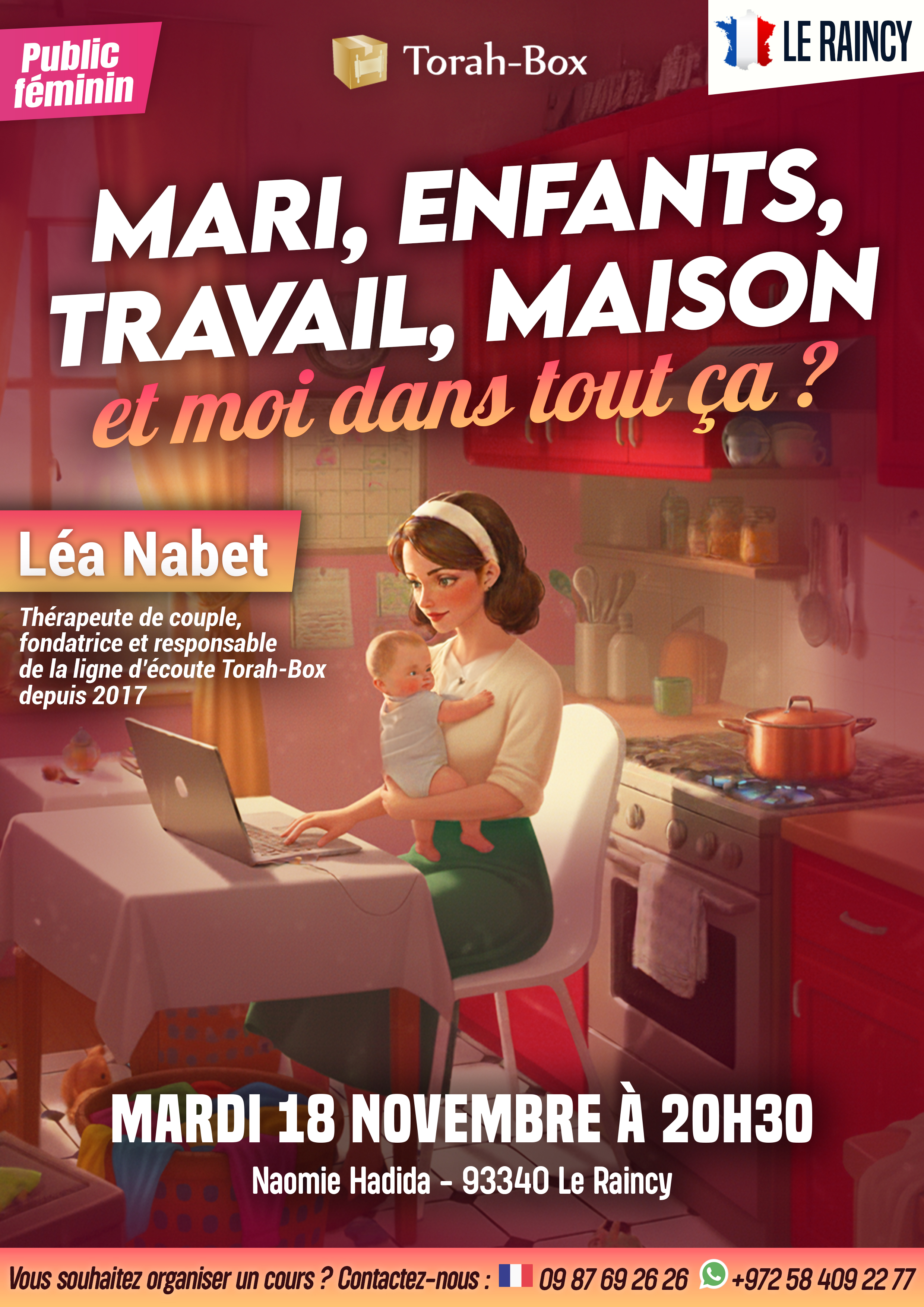 Léa Nabet, thérapeute de couple, fondatrice et responsable de la ligne d’écoute Torah-Box depuis 2017, viendra partager des outils concrets et une vision éclairante pour retrouver du sens, du calme et de la joie au cœur du tumulte.