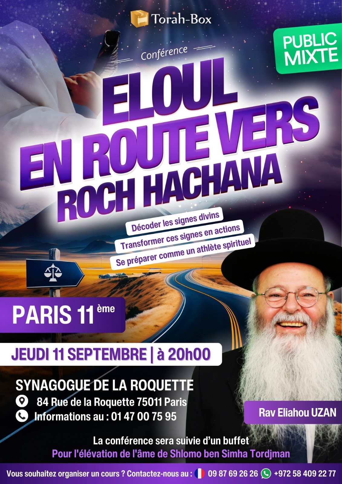 Ne manquez pas cette occasion unique de vivre ce mois d'Eloul dans la profondeur et la joie, avec le rav Eliahou Uzan dont les enseignements illuminent et transforment.