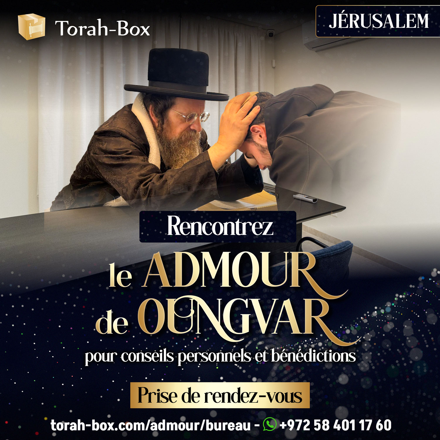 Pour fixer un rendez-vous : torah-box.com/admour/bureau ou +972 58 401 17 60