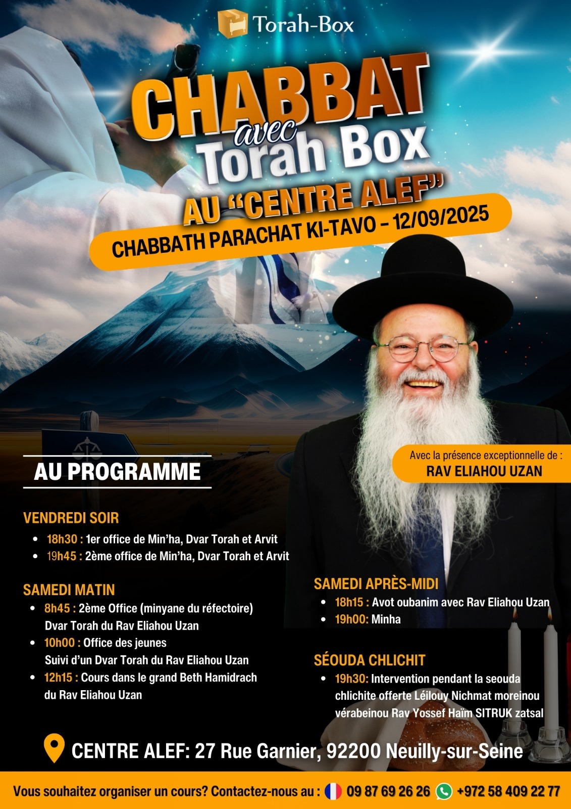 10h00 : Office des jeunes suivi d’un Dvar Torah du Rav Eliahou Uzan
