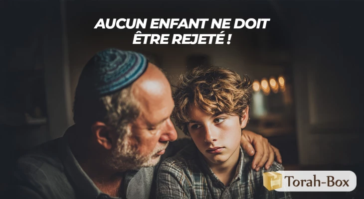En effet, ceci a toujours été l’attitude juive envers nos enfants rebelles. Chaque parent doit prendre en considération que chasser un enfant peut le conduire à s’enfoncer encore plus profondément. Au moins, tant qu’il est à la maison, il voit encore le Chabbath, les jours de fête, il entend encore la voix de ses parents, même s’il semble qu’il n’écoute pas, qu’il n’entend pas.
