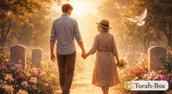 J'avance maintenant jusqu'en 1987. Je vais avec ma grand-mère sur la tombe de sa sœur. Sa sœur venait de mourir un an plus tôt (Sheindy, la sœur qui lui avait sauvé la vie). Nous allons sur sa tombe, juste à la sortie de Tel-Aviv et nous sommes là debout, et ma grand-mère lui parle. Elle lui dit : « Shaindy, Talik est ici avec moi, et tout va tellement bien, c'est merveilleux. Moty - mon père - va très bien. Les enfants sont vraiment extraordinaires. » Et elle lui parle pendant une demi-heure. Et moi je me contente d'observer cette femme merveilleuse, extraordinaire.