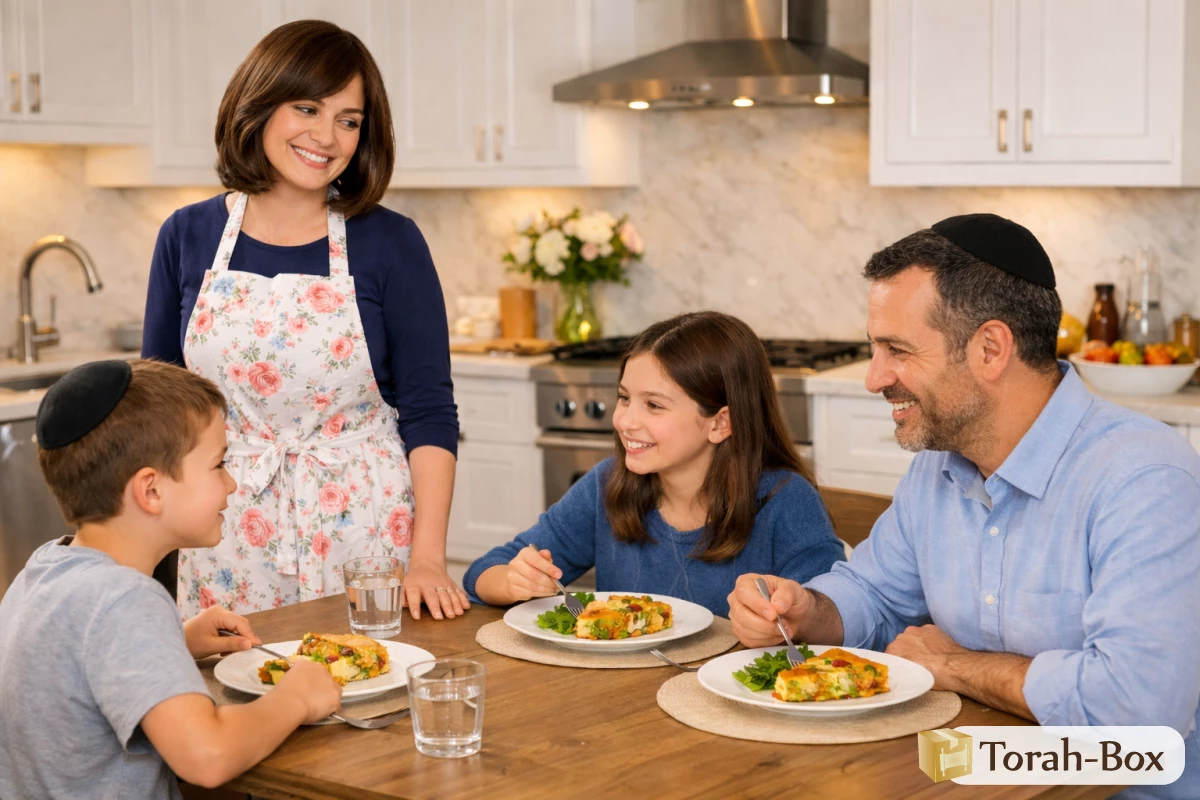 Par son souci des besoins matériels du mari (et du reste de la famille), la femme permet son avancée spirituelle. Notre rôle dans la cuisine (et dans la maison en général) est d’une importance fondamentale, il est bien plus qu’un simple plat (qui prend trois quarts d’heure à mijoter et 5 minutes à manger😉). C’est une nourriture de la Néchama ! (explication entendue de la Rabbanite Chémech)