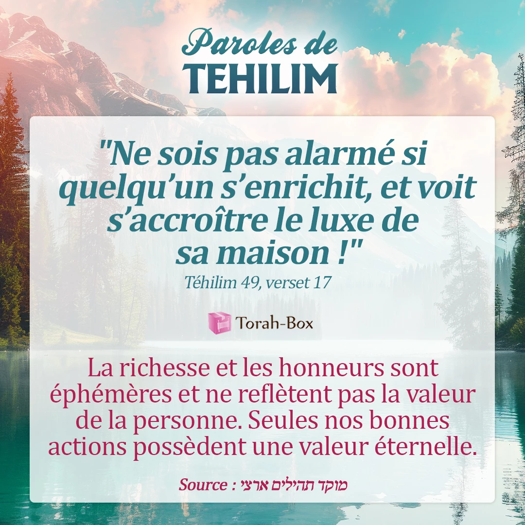 Paroles de Téhilim : "Ne sois pas alarmé si quelqu'un s'enrichit..."
