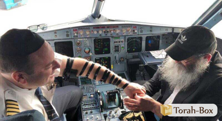Tandis que le pilote, paré des Téfilines, récitait le Chéma Israël, le copilote se manifesta et indiqua au Rav qu’il était également juif, mais qu’il n’avait jamais encore eu le bonheur de mettre les Téfilines, à 44 ans.