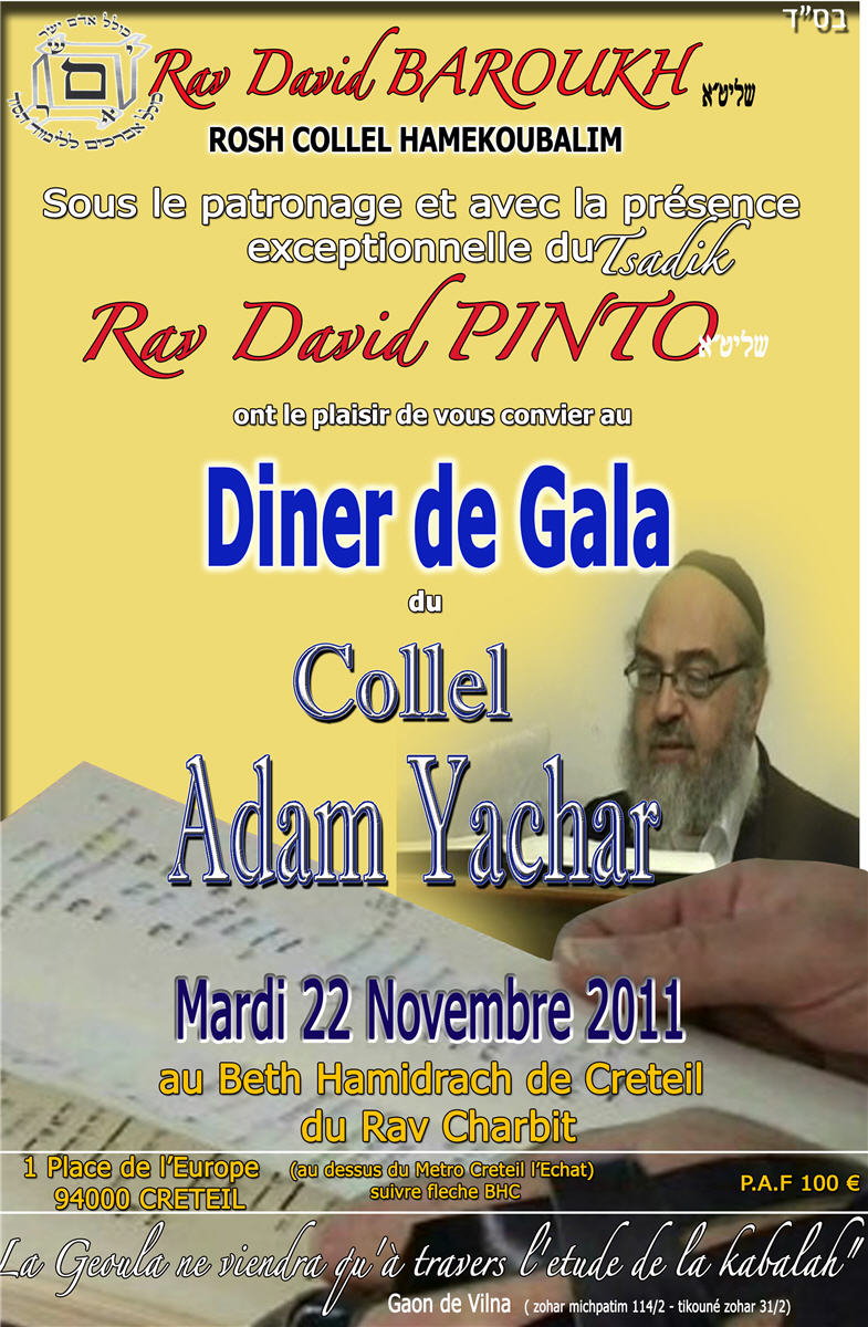 Sous le patronage et avec la présence exceptionnelle du Tsadik Hagaon Rabbi David 'Hanania PINTO