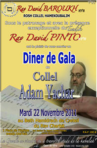 Ont le plaisir de vous convier au Dîner de gala annuel du Collel ADAM YACHAR