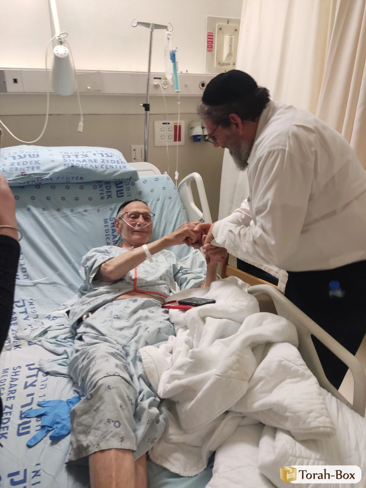 Tout d’abord, j’aimerais si vous le permettez m’attarder plus spécifiquement sur l’équipe de Torah-Box, avec laquelle nous entretenons un lien très cher et particulier. Ces gens si spéciaux ont un beau jour atterri au sein de notre service, comme des anges venus d’ailleurs, apportant bonheur et bonté avec eux. Certes de nombreuses associations œuvrent ci et là pour alléger le quotidien des malades, mais l’action de Torah-Box est tout autre. Peu importe la situation sécuritaire – et D.ieu sait qu’elle est souvent pas simple – peu importe les conditions météorologiques, peu importe que Chabbath rentre tôt ou que ce soit veille de fête, ils arrivent avec leurs chants, leurs déguisements, leurs cadeaux, leurs sourires et leur musique et le plus simplement du monde, ils redonnent vie à ce service souvent morose. Ils rentrent dans chaque chambre, s’arrêtent et offrent de l’attention à chaque malade, ils n’oublient personne. Aucun mot au monde ne peut décrire ce que cela produit aussi bien sur les malades que sur les soignants. Ces visites ravivent la flamme de nos malades et de leurs familles, elles leur redonnent joie et espoir, c’est indescriptible ce qu’il se passe ici chaque vendredi. Nos malades sont des gens qui sont souvent alités depuis des semaines, parfois des mois ! Ils sont souvent repliés sur eux. Certains ont très peu de visites, d’autres n’ont même pas d’enfants du tout. Pour certains, ils attendent le vendredi avec impatience ! Voir une personne de près de 100 ans, malade et alitée depuis des mois, se mettre à taper des mains, chanter et parfois même danser au son de la musique, c’est une image indélébile.