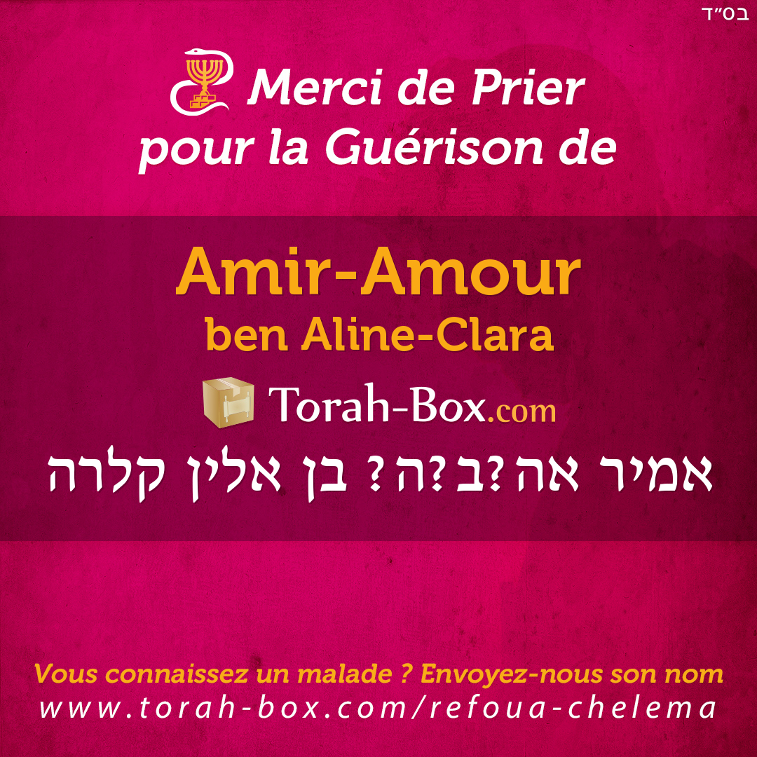Nos Sages ont enseigné que la Téfila (prière), la Téchouva (repentir) et la Tsédaka (charité) permettent d'annuler un décret divin. Afin de contribuer à la guérison complète de Amir-Amour, ses proches et ses amis sont invités à agir pour lui.
