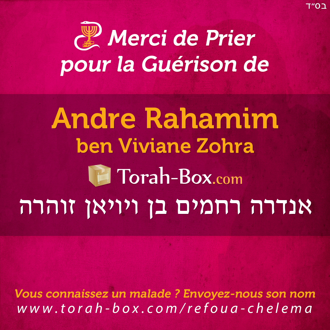 Nos Sages ont enseigné que la Téfila (prière), la Téchouva (repentir) et la Tsédaka (charité) permettent d'annuler un décret divin. Afin de contribuer à la guérison complète de Andre Rahamim, ses proches et ses amis sont invités à agir pour lui.