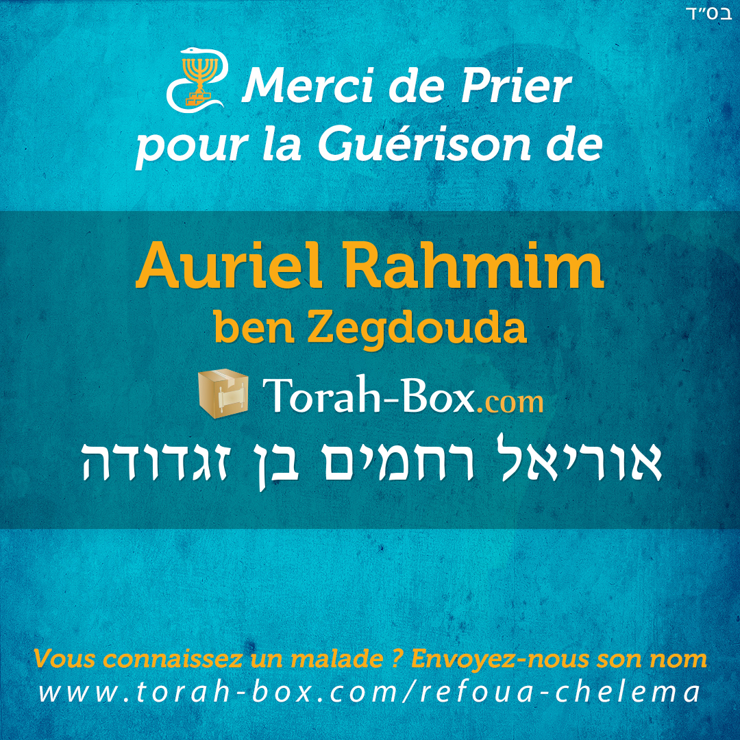 Nos Sages ont enseigné que la Téfila (prière), la Téchouva (repentir) et la Tsédaka (charité) permettent d'annuler un décret divin. Afin de contribuer à la guérison complète de Auriel Rahmim, ses proches et ses amis sont invités à agir pour lui.