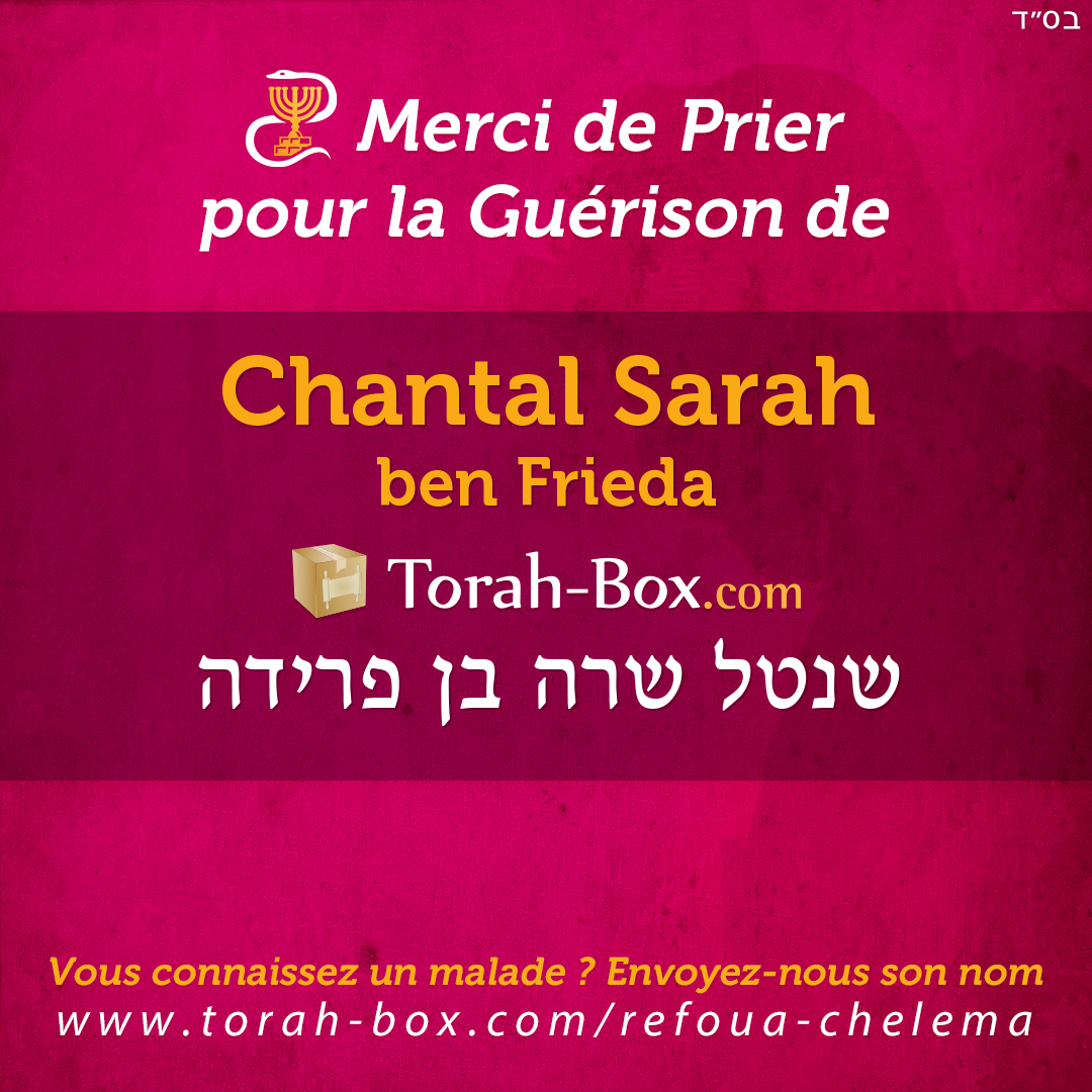 Nos Sages ont enseigné que la Téfila (prière), la Téchouva (repentir) et la Tsédaka (charité) permettent d'annuler un décret divin. Afin de contribuer à la guérison complète de Chantal Sarah, ses proches et ses amis sont invités à agir pour lui.