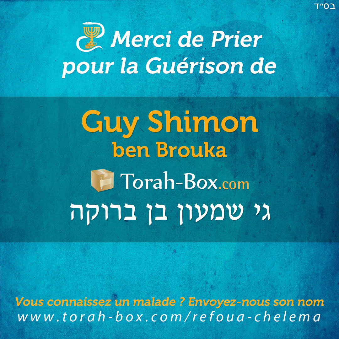 Nos Sages ont enseigné que la Téfila (prière), la Téchouva (repentir) et la Tsédaka (charité) permettent d'annuler un décret divin. Afin de contribuer à la guérison complète de Guy Shimon, ses proches et ses amis sont invités à agir pour lui.