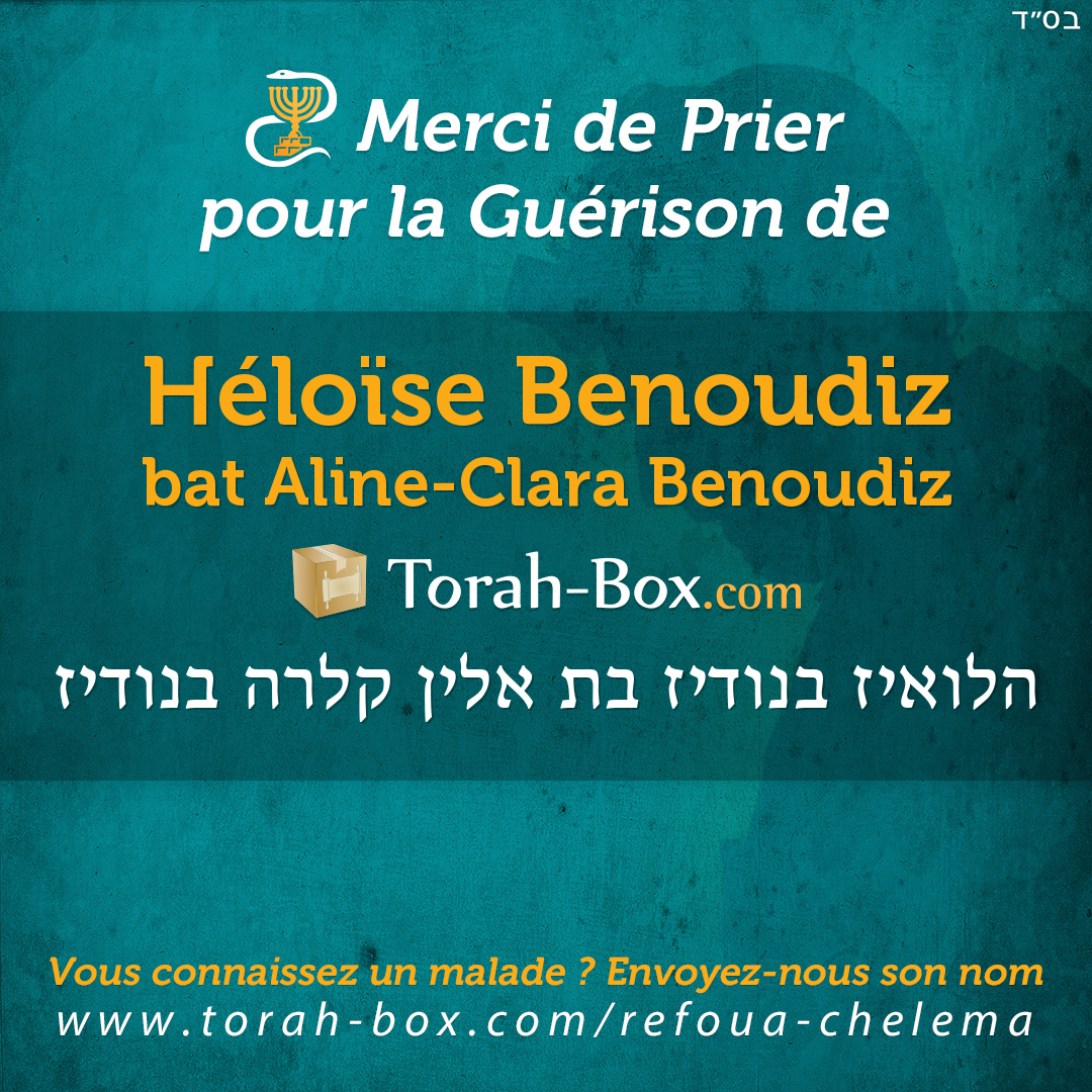 Nos Sages ont enseigné que la Téfila (prière), la Téchouva (repentir) et la Tsédaka (charité) permettent d'annuler un décret divin. Afin de contribuer à la guérison complète de Héloïse Benoudiz, ses proches et ses amis sont invités à agir pour lui.