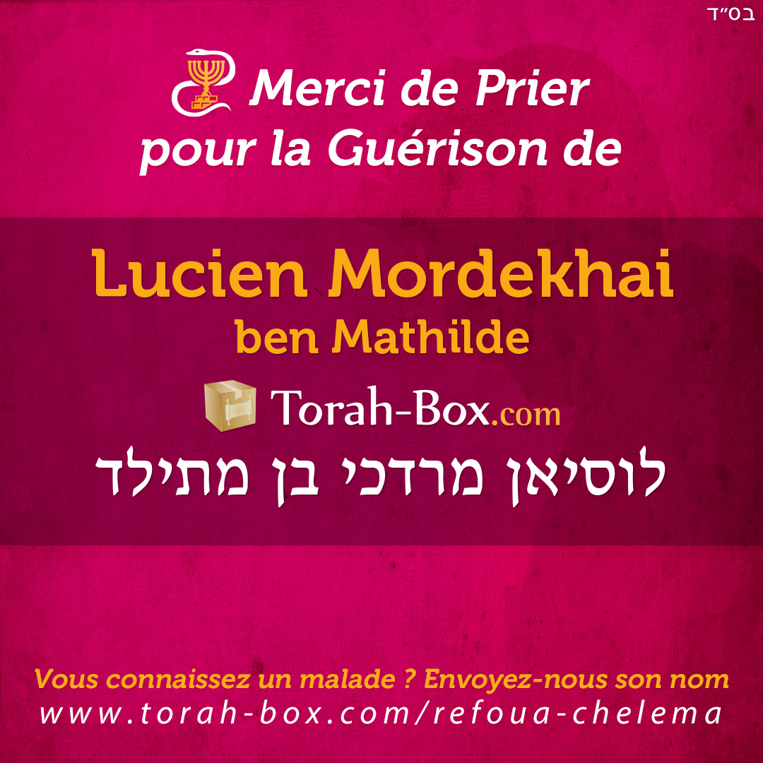 Nos Sages ont enseigné que la Téfila (prière), la Téchouva (repentir) et la Tsédaka (charité) permettent d'annuler un décret divin. Afin de contribuer à la guérison complète de Lucien Mordekhai, ses proches et ses amis sont invités à agir pour lui.