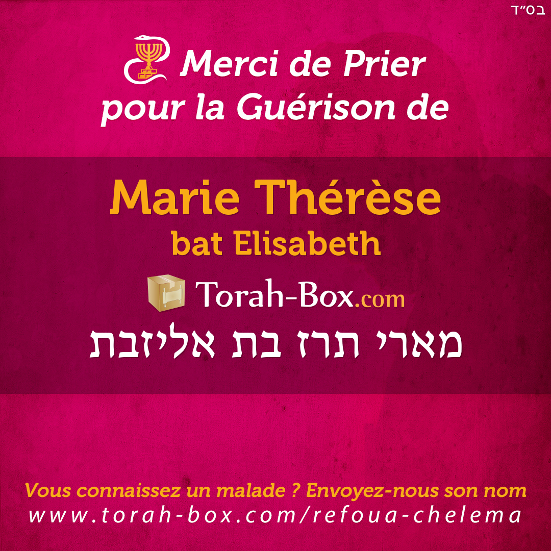 Nos Sages ont enseigné que la Téfila (prière), la Téchouva (repentir) et la Tsédaka (charité) permettent d'annuler un décret divin. Afin de contribuer à la guérison complète de Marie Thérèse, ses proches et ses amis sont invités à agir pour lui.