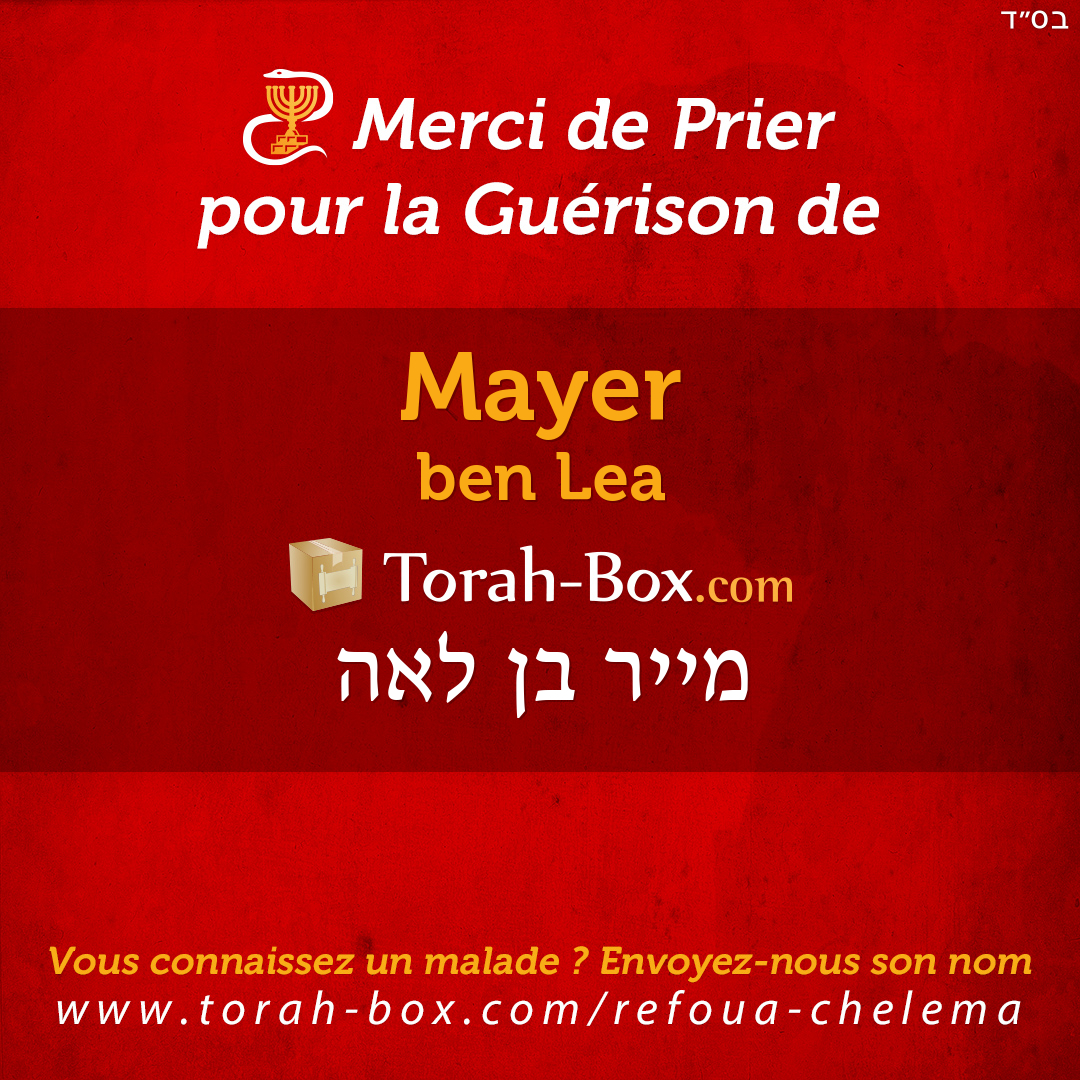 Nos Sages ont enseigné que la Téfila (prière), la Téchouva (repentir) et la Tsédaka (charité) permettent d'annuler un décret divin. Afin de contribuer à la guérison complète de Mayer, ses proches et ses amis sont invités à agir pour lui.