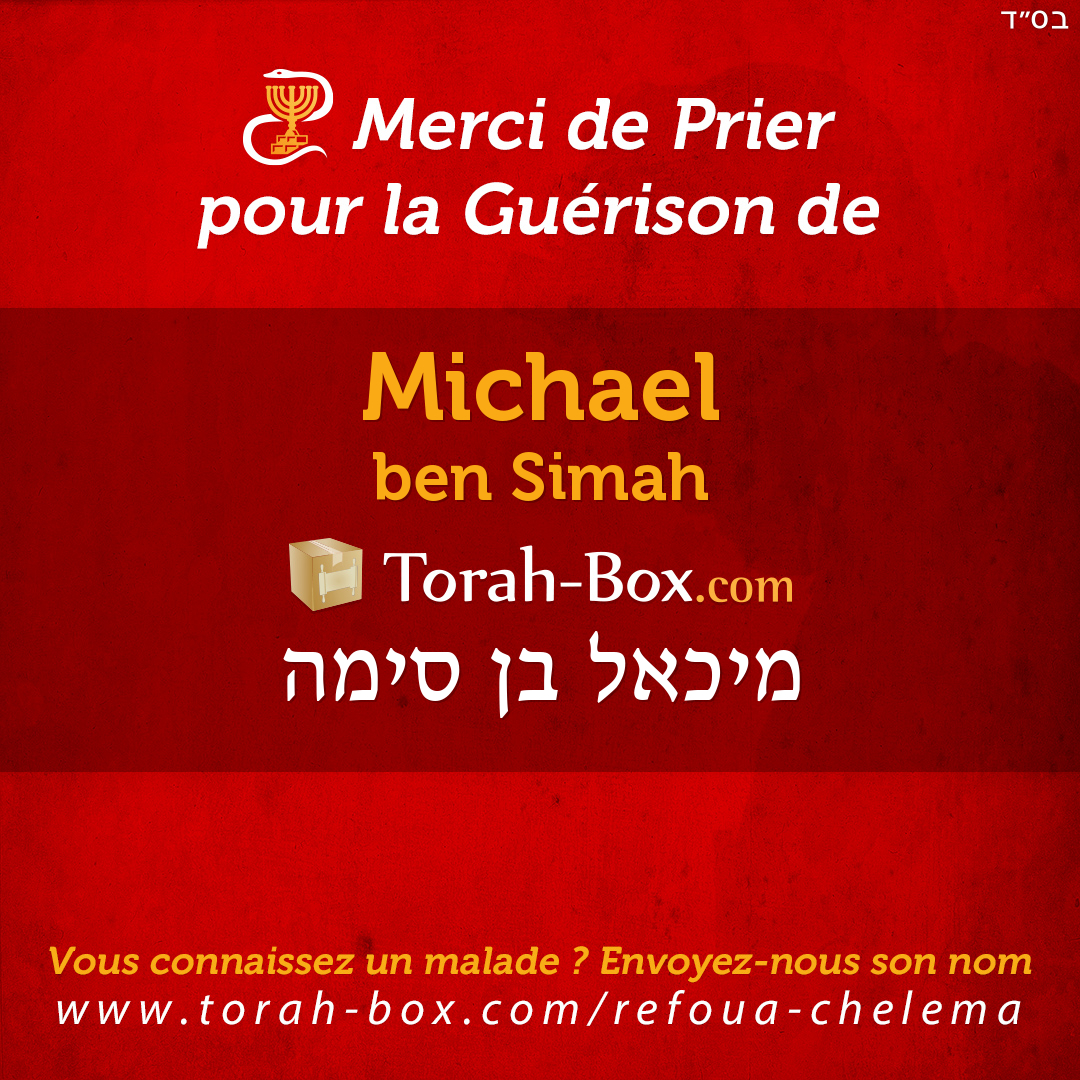 Nos Sages ont enseigné que la Téfila (prière), la Téchouva (repentir) et la Tsédaka (charité) permettent d'annuler un décret divin. Afin de contribuer à la guérison complète de Michael, ses proches et ses amis sont invités à agir pour lui.