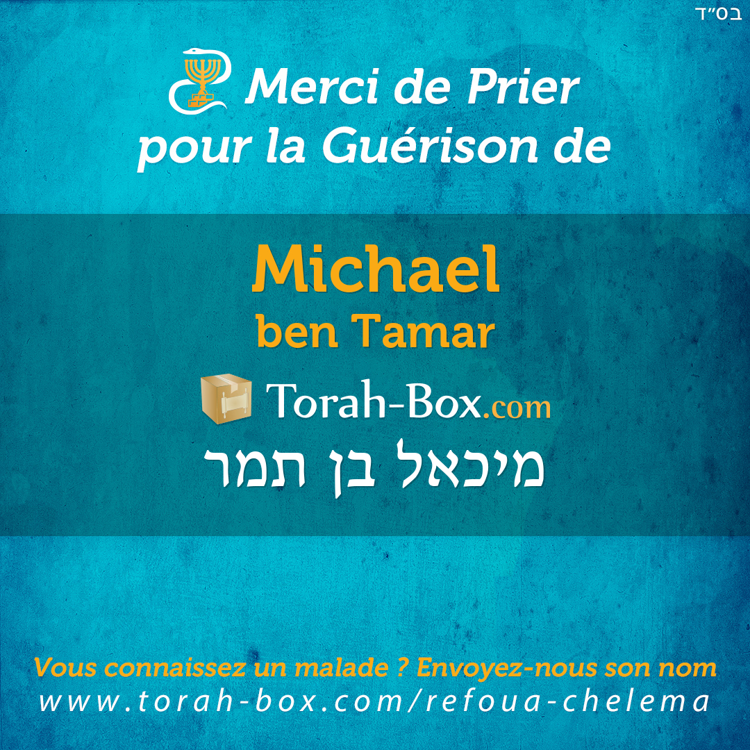 Nos Sages ont enseigné que la Téfila (prière), la Téchouva (repentir) et la Tsédaka (charité) permettent d'annuler un décret divin. Afin de contribuer à la guérison complète de Michael, ses proches et ses amis sont invités à agir pour lui.