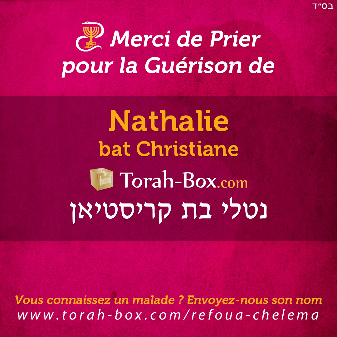 Nos Sages ont enseigné que la Téfila (prière), la Téchouva (repentir) et la Tsédaka (charité) permettent d'annuler un décret divin. Afin de contribuer à la guérison complète de Nathalie, ses proches et ses amis sont invités à agir pour lui.