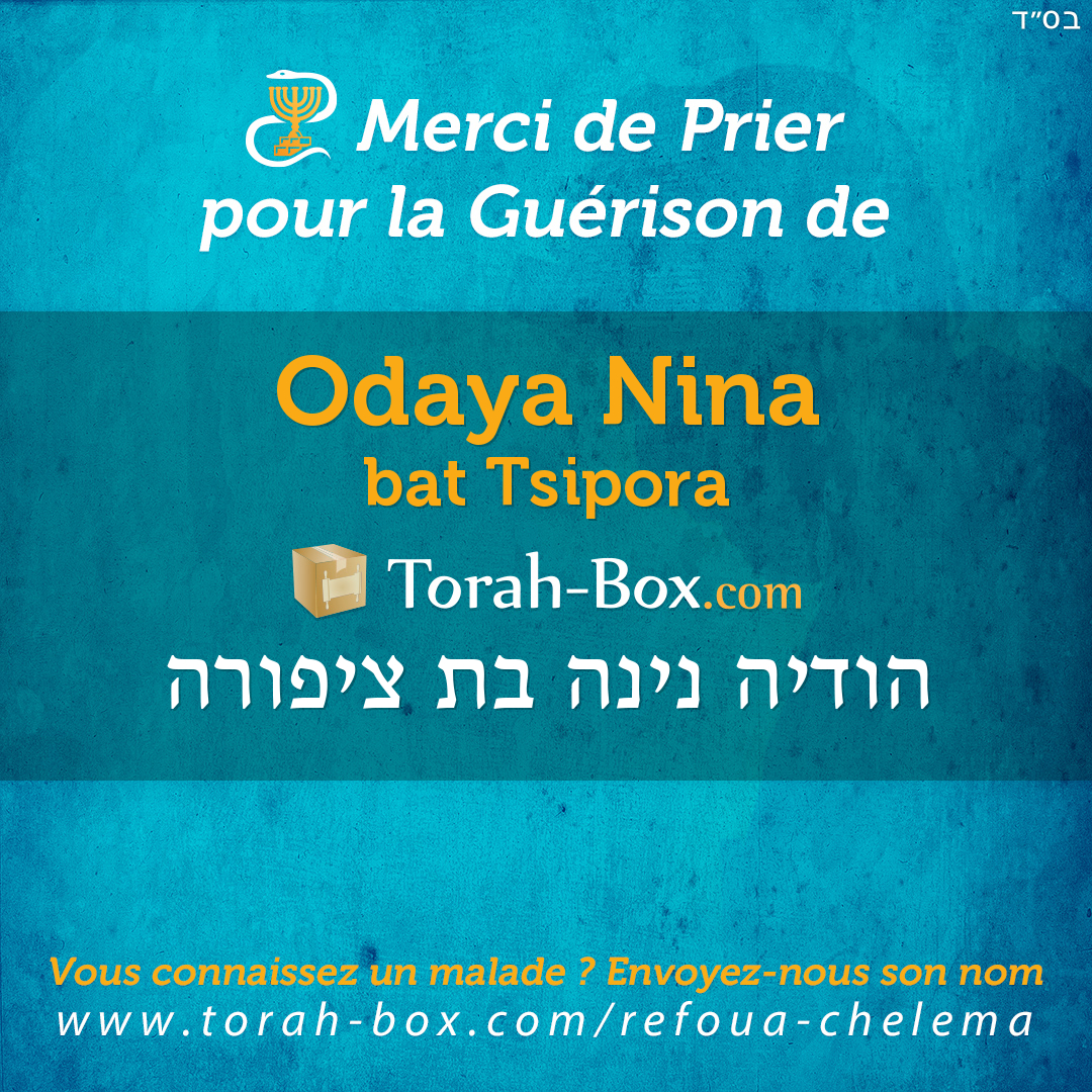 Nos Sages ont enseigné que la Téfila (prière), la Téchouva (repentir) et la Tsédaka (charité) permettent d'annuler un décret divin. Afin de contribuer à la guérison complète de Odaya Nina, ses proches et ses amis sont invités à agir pour lui.