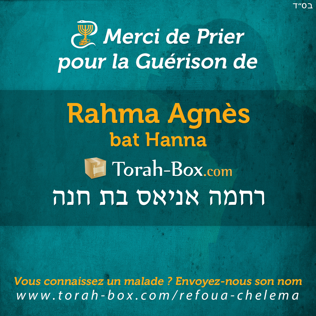 Nos Sages ont enseigné que la Téfila (prière), la Téchouva (repentir) et la Tsédaka (charité) permettent d'annuler un décret divin. Afin de contribuer à la guérison complète de Rahma Agnès, ses proches et ses amis sont invités à agir pour lui.