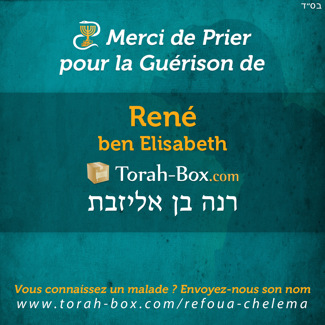Nos Sages ont enseigné que la Téfila (prière), la Téchouva (repentir) et la Tsédaka (charité) permettent d'annuler un décret divin. Afin de contribuer à la guérison complète de René, ses proches et ses amis sont invités à agir pour lui.
