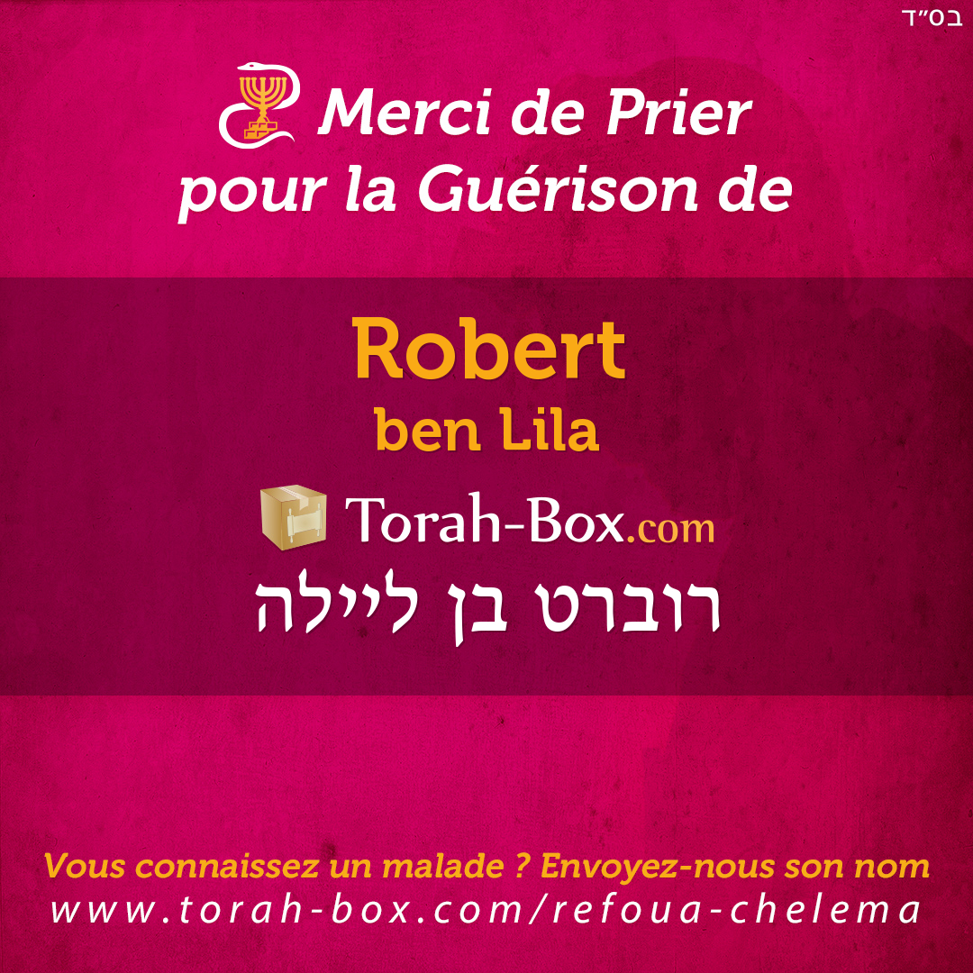 Nos Sages ont enseigné que la Téfila (prière), la Téchouva (repentir) et la Tsédaka (charité) permettent d'annuler un décret divin. Afin de contribuer à la guérison complète de Robert, ses proches et ses amis sont invités à agir pour lui.