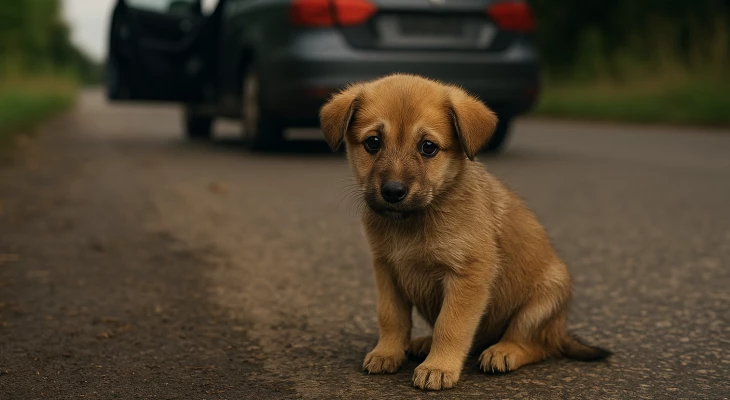 Un petit chiot, abandonné par ses anciens propriétaires sans la moindre cérémonie – juste balancé sans vergogne par la portière arrière d'une voiture (oui, comme un vieux sac de pommes de terre, sauf que là, c’était un être vivant, apeuré et tremblant) – a été trouvé, seul et perdu.