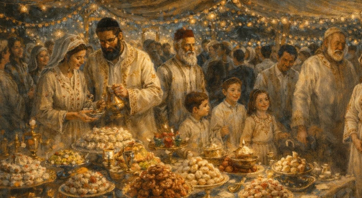 Le maire, M. Alon Davidi, dit quelques mots sur l'estrade, dans un brouhaha de voix joyeuses et de musique orientale ; puis une femme du peuple, amoureuse de sa ville, prend le micro et parle comme un Gadol Hador : « Mes amis, la Mimouna, ce n’est pas les mouffletas ! Erreur ! La Mimouna, c’est l’union du peuple juif ; on se rend visite sans invitations, sans regarder les origines, les différences de rites, les frontières entre communautés. C’est ça, le message de la Mimouna. »